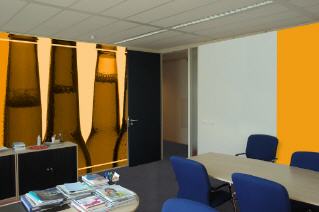 De opdracht "meer speelsheid met behoud van de zakelijke uitstraling" is zeer geslaagd! In de centrale ruimten en de gang is bewust voor minder opvallen de kleuren gekozen om de wat meer "zakelijke" uistraling te realiseren.