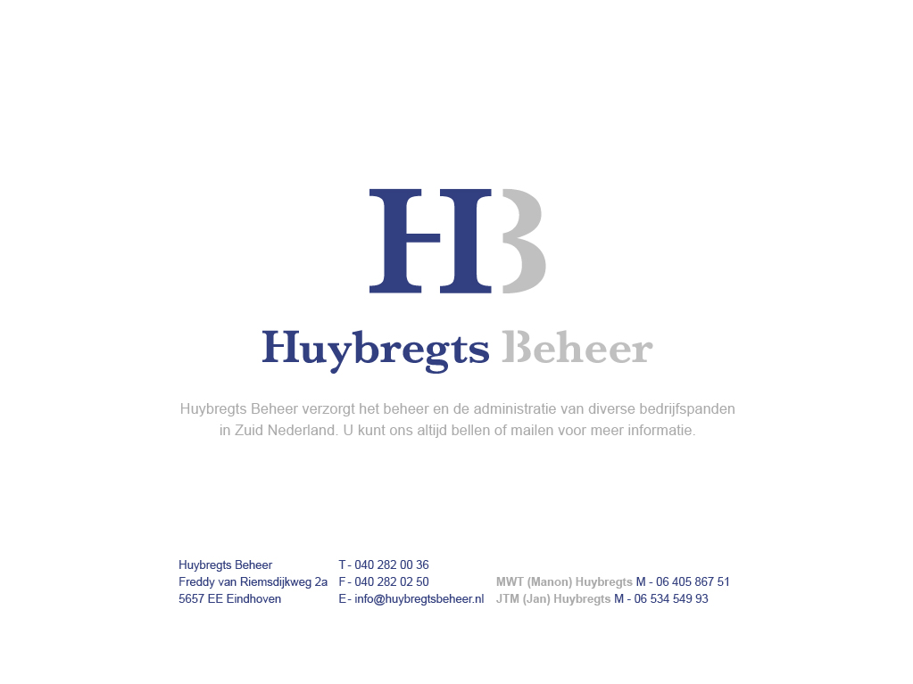 Huybregts Beheer verzorgt het beheer en de administratie van diverse bedrijfspanden in Zuid Nederland.